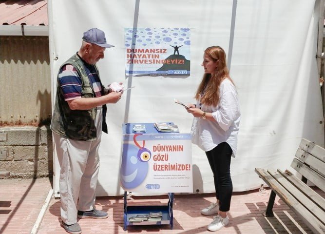İlçe Sağlık Müdürlüğü Personeli etkinlik kapsamında açtıkları stantta vatandaşlara sigarının zararlarına karşı bilgilendirmelerde bulunup, bilgi broşürleri dağıttılar. 31 Mayıs Dünya Tütünsüz Günü dolayısıyla düzenlenen etkinliğe vatandaşlar yoğun ilgi gösterirken, Saray İlçe Sağlık Müdürü Dr. Kübra Duman sigaranın zararlarına karşı şu bilgileri paylaştı;