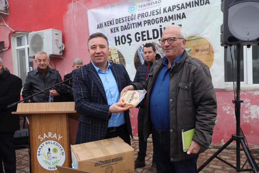 Arı Keki Dağıtım Töreninde Başkan Kadir Albayrak’ın yanı sıra Saray Belediye Başkanı Özgen Erkiş, Tekirdağ İli Arı Yetiştiricileri Birliği Başkanı Selman Aslantürk, Büyükşehir Belediyesi Tarımsal Hizmetler Dairesi Başkanı Fatih Bakanoğulları, mahalle muhtarları ve vatandaşlar katıldı.