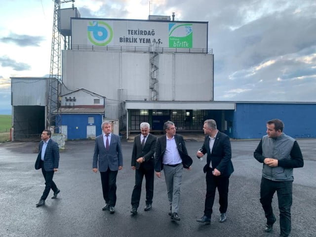 Tarımı ve üreticiyi destekleme projesi kapsamında yürütülen çalışmalar çerçevesinde İstanbul Büyükşehir Belediyesi Başkan Danışmanı Gökhan Günaydın, İSYÖN Genel Müdürü Hamdi Arpa ile birlikte, Tekirdağ Büyükşehir Belediye Başkanı Kadir Albayrak’ı makamında ziyaret ederek tarım politikaları ve tarımsal çalışmalarla ilgili sohbet edip görüş alışverişinde bulundu. Ardından Tekirdağ Büyükşehir Belediyesi Birlik Yem fabrikasına ziyaret gerçekleştirildi. İstanbul Büyükşehir Belediyesi Başkan Danışmanı Gökhan Günaydın’ın yanı sıra Tekirdağ Büyükşehir Belediyesi Tarımsal Hizmetler Dairesi Başkanı Hasan Bayram ve Tekirdağ Büyükşehir Belediyesi Birlik Yem A.Ş Yönetim Kurulu Başkanı Sertaç Balyemez ve fabrika müdürü Necati Elitaş’ın eşlik ettiği gezide, fabrikanın kullandığı hammaddeler, üretim süreci ve rasyon incelenmiştir.