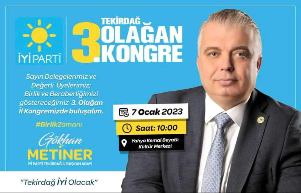Haftasonu yapılacak olan İYİ Parti Tekirdağ 3. Olağan İl Kongresinde Başkan Adayı Gökhan Metiner’in hemen hemen tüm ilçelerin açık desteğini almasıyla Ali Darıcı’ya karşı girdiği başkanlık yarışında kazanmasına kesin gözüyle bakılıyor.