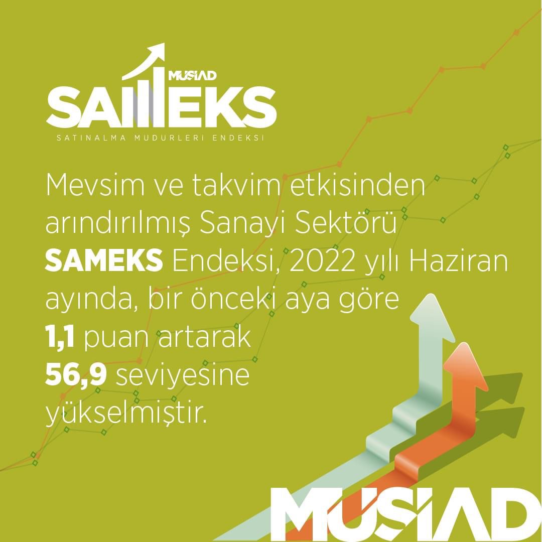 2022 yılının 1. çeyreğini 53,1 puan ortalamasıyla kapatarak bu döneme ilişkin ekonomik aktivitenin canlılığını teyit eden SAMEKS Bileşik Endeksi, yılın 2. çeyreğini de 55,0 puan ortalamasıyla kapatarak pozitif görünümünü sürdürmüştür. Haziran ayında bir miktar hız kaybeden Hizmet Sektörü Endeksi önceki aya kıyasla daha durgun bir görünüm arz ederken, son 1,5 yılın (Aralık 2020’den beri) en yüksek seviyesine yükselen Sanayi Sektörü Endeksi ise oldukça pozitif bir görünüm sunmuştur. ‘Dedi.