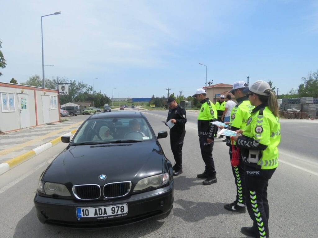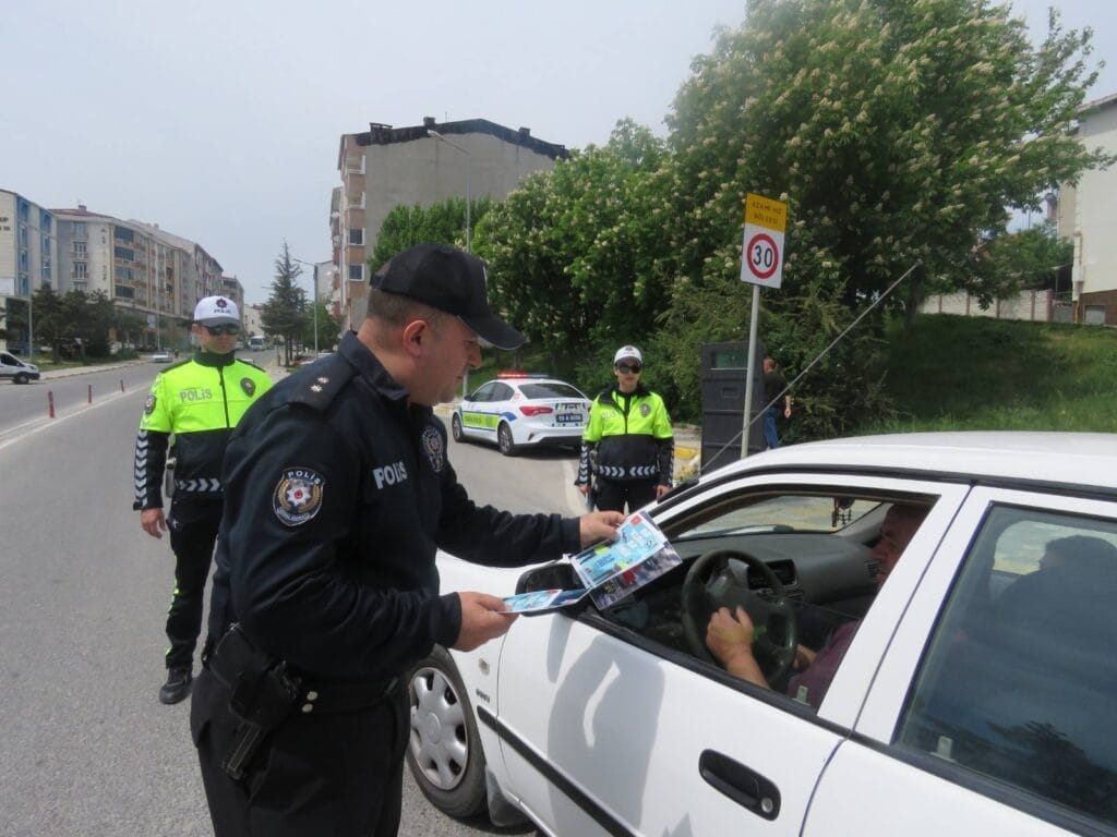 İlçe Emniyet Müdürlüğü Trafik Haftası kapsamında yapılan uygulamalarda, sürücüleri trafik kuralları hakkında bilgilendirdi.