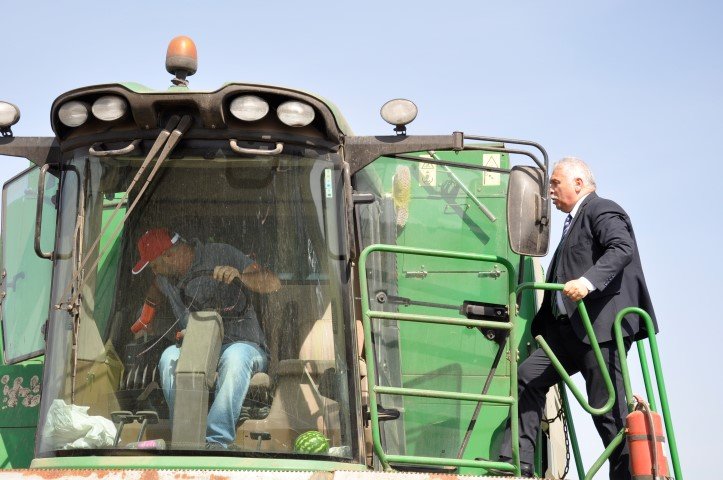 Çiftçi Doğan Kır ile birlikte biçerdövere binerek hasat çalışmasına katılan ve yerli tohumlar hakkında bilgiler alan Vali Aziz Yıldırım gerçekleştirdiği konuşmasında; “Gıdamızın kendimize yetebilmesi için öncelikle toprağımızda üretim yapmak mecburiyetindeyiz. Bugün de burada üreten emekçilerimizin emeklerinin zayi olmayacağına inanıyorum ve kendilerine teşekkür ediyorum. Deneme üretimi için topraklarını tahsis eden çiftçilerimizi de cesaretlerinden dolayı tebrik ediyorum. Katkıları daha sonra ki üretimler için bizlere elzem olacak. Projede emeği geçen herkesi tebrik ediyorum. Gıda üretiminde dışarıya bağımlılığın azaltılmasının ne kadar önemli olduğunu Rusya Ukrayna savaşı bir defa daha göstermiştir. İnsanlar eğer başkalarına onların ektiklerine mecbur kalmayacaklarsa önce kendi gıdalarını üretmek mecburiyetindeler, bunu bir kez daha anladık. Trakya çiftçisinin yaptıkları takdire şayan. Ben sizlerin huzurunda tüm arkadaşlarını bir kez daha tebrik ediyor ve teşekkür ediyorum. Tarım olmazsa olmazımız, gıda olmazsa olmazımızdır. Ayakta durabiliyorsak gıdasız olmuyor. Bereketli olsun inşallah bu sayede en verimli, en avantajlı tohumun hangisi olduğunu görmüş olacağız. Börtü böceğe dayanıklı, hastalıklara dayanıklı, daha az su kullanan, daha besleyici ürünlerin olacağına inanıyorum. Hepinize tekrar teşekkür ediyorum” diye konuştu.